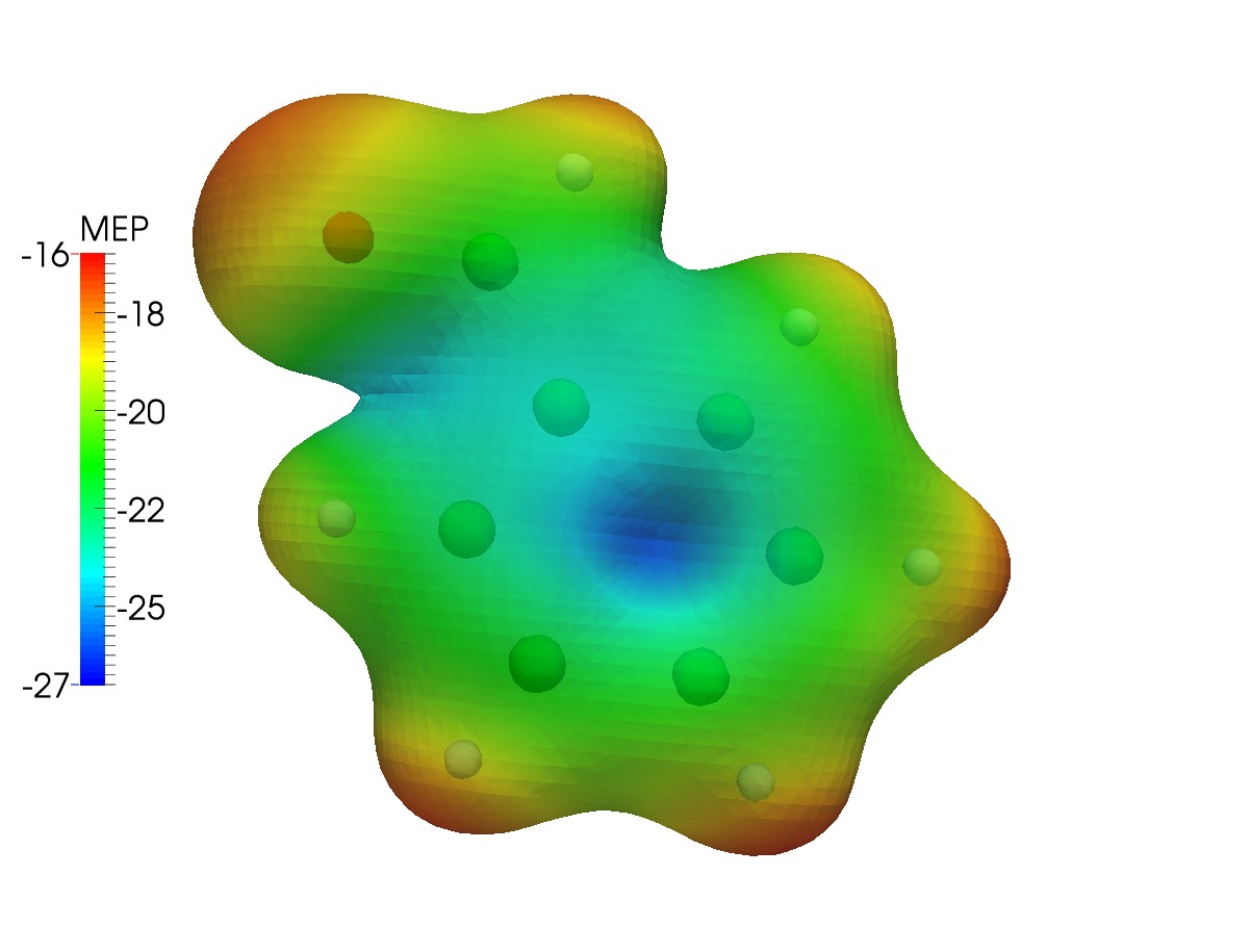 In this tutorial we will go through the steps necessary for the visualization of the molecular electrostatic potentiali (MEP). The MEP at a point \(\mathbf{r}\) in space is: