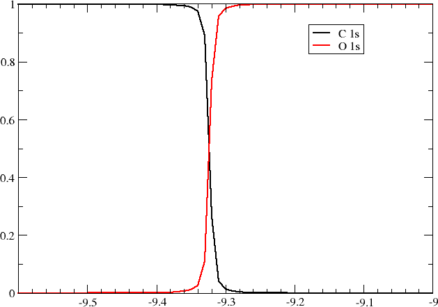 Let us now see what happens if we bring the two atomic core orbitals into resonance. First we generate the carbon atomic orbitals, using input files C.inp